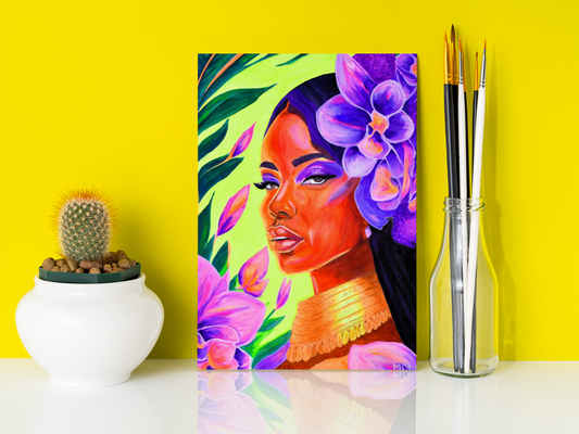 I am deeply passionate about painting boldly and vibrantly, using acrylic and the delicate touch of gold leaf in my artistic endeavors. My creative canvas is a fusion of themes and subjects that resonate deeply within me.